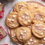 These White Chocolate Peppermint Cheesecake Cookies combine the creamy indulgence of cheesecake filling with festive peppermint-flavored cookies studded with white chocolate chips and crushed candy canes. Perfectly soft and chewy with a refreshing minty crunch, these holiday treats are sure to delight at any occasion.