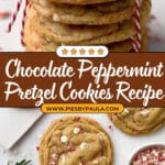 These White Chocolate Peppermint Pretzel Cookies combine the sweet creaminess of white chocolate with the refreshing crunch of peppermint candies and salty pretzels. Perfect for the holiday season, these soft and chewy cookies offer a delightful mix of flavors and textures, finished with a sprinkle of flaky sea salt for an extra burst of taste.