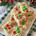 - Christmas sprinkles & M&Ms: These festive touches make the slice as eye-catching as it is tasty.