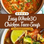 This Whole30 Chicken Taco Soup Recipe has become one of my go-to dishes not just because it’s Whole30-friendly, but because it feels like warmth and care in a bowl. When I first made it for my family, they kept asking for seconds and the leftovers vanished fast. I hope you’ll enjoy making it as much as I do—the balance of spicy, smoky, fresh, and savory is just unbeatable. Pour yourself a bowl, garnish with cilantro and lime, and savor a moment of delicious simplicity.