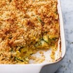 This Zucchini Bake is a comforting and cheesy casserole perfect for using up fresh zucchini. It features sautéed onions, grated zucchini, creamy Gruyere and Parmesan cheeses, and a crunchy buttery breadcrumb topping. Baked to a golden brown perfection, it makes a hearty side dish or light meal that’s easy to prepare and freezer-friendly.